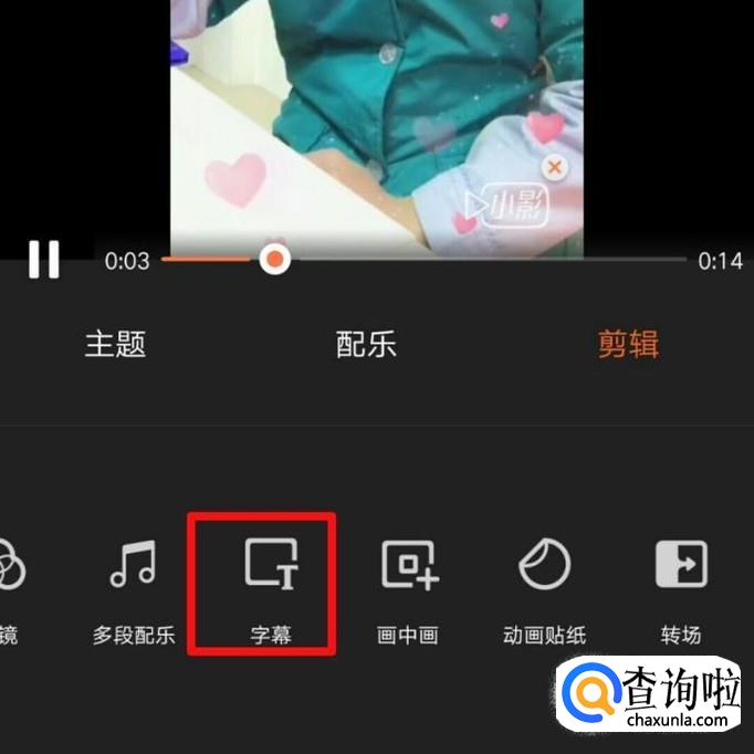在编辑界面的第三个大选项“剪辑”中,就有关于添加字幕的操作,所以先点击进去剪辑界面,然后剪辑界面中找到“字幕”。