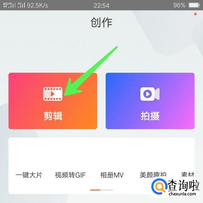 首先进入小影创作界面,然后点击“剪辑”,进入视频选择界面。
