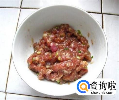 瘦肉清洗干净,切成肉沫,加入适量的花生油、酱油、耗油、葱末,一起搅拌均匀,腌制半小时。