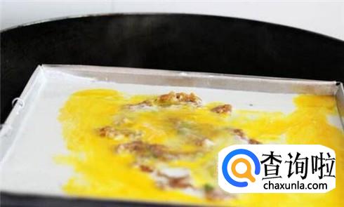 然后放入少许肉沫,把米糊和肉沫一起放入蒸笼上蒸。