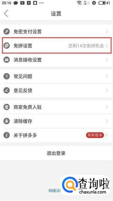 进入设置页面,在免拼设置右侧方,就可以看到剩下的免拼次数,点击“免拼设置”