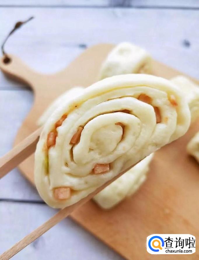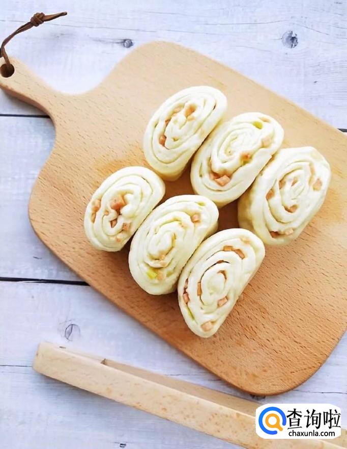 食材:白面,酵母,火腿肠,葱花,食用盐。