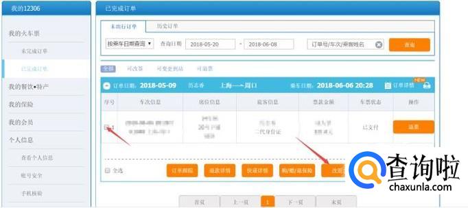 在个人中心的已完成订单中,找到你当初买的火车票,然后选中火车票,点击改签。