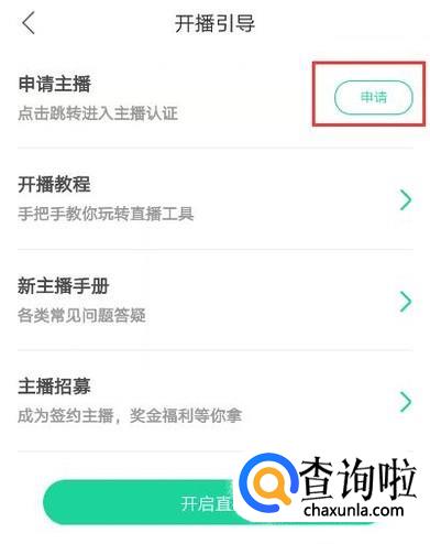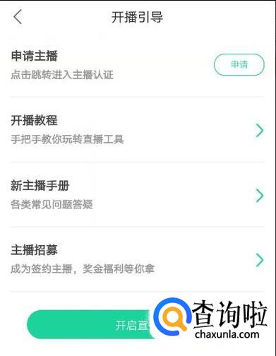 点击下我要当主播的功能会来到开播引导的界面,如图