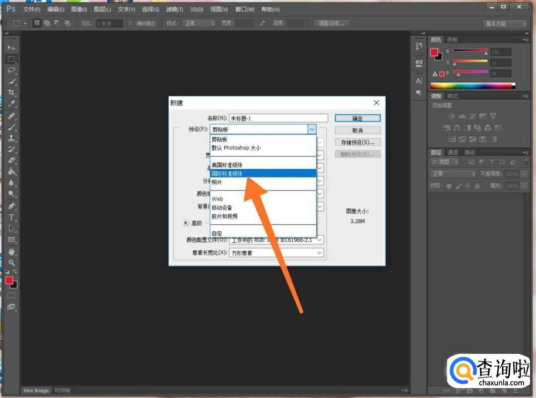 改为【国际标准纸张】后,我们点击【确定】。