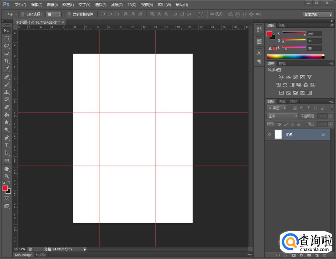 这时我们就可以就可以点击标尺;或者按快捷键Ctrl+R,这两种方法都可以打开标尺。