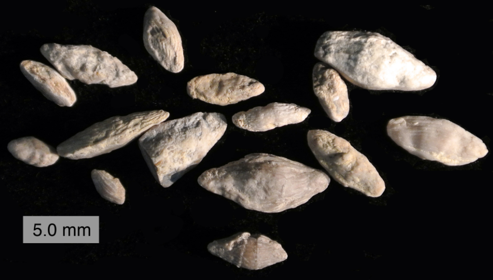 䗴化石风化后往往突出于岩石层面之上,虽然只有米粒大小,但因数量多,分布集中,比较容易辨认。