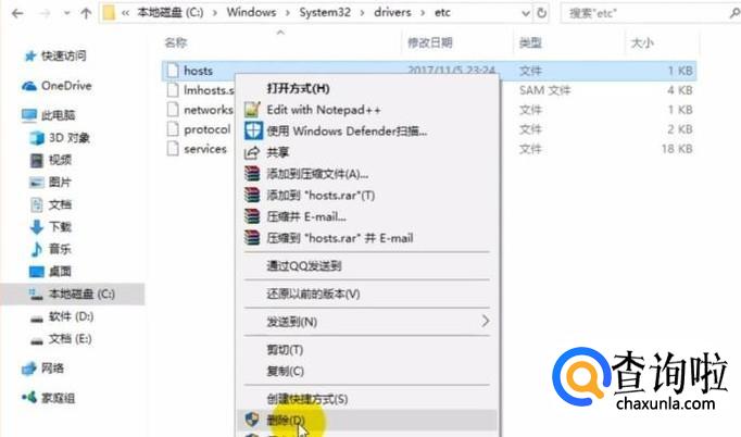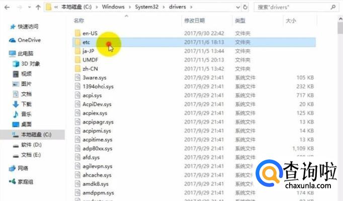 进入我的电脑,在C盘中Windows中的system文件夹里面的etc文件夹里找到hosts文件。