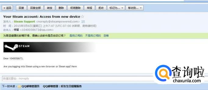 删除hosts文件后再打开steam邮箱找到验证邮件。