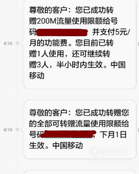 我们可以查看赠送人所使用的流量情况,也可以对赠送的流量进行修改设置。(需要注意首次使用半小时生效,后面的再设置修改都需要下个月1号)