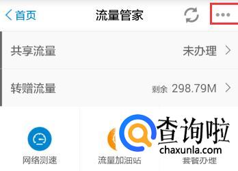 点选右上角三个点的位置,弹出一个对话框,在这里就可以看了转赠流量的选项了!