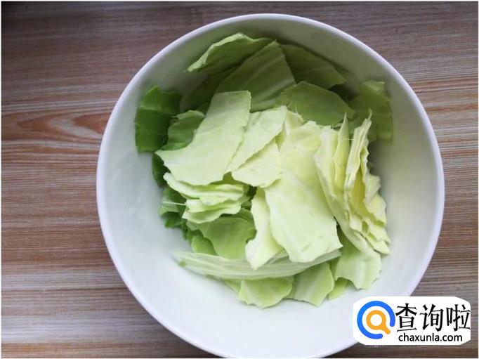准备好一些莲白,并将莲白掰成适当的大小,和之前切好的海带丝同放在同一个碗里待用。