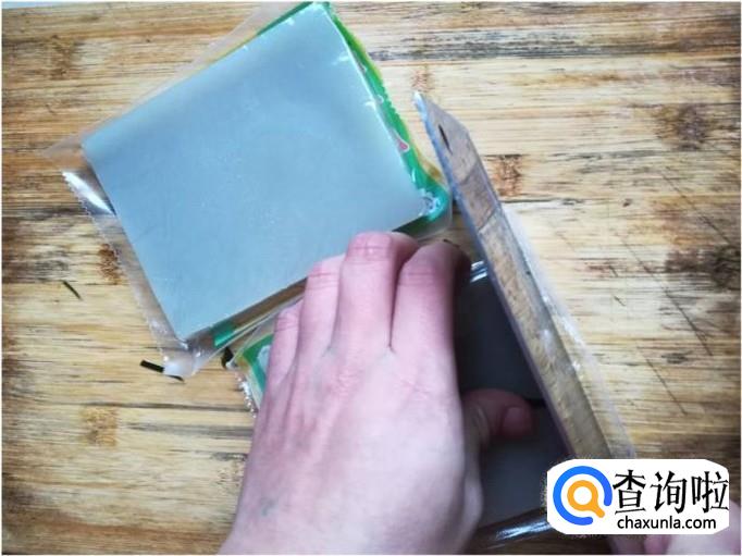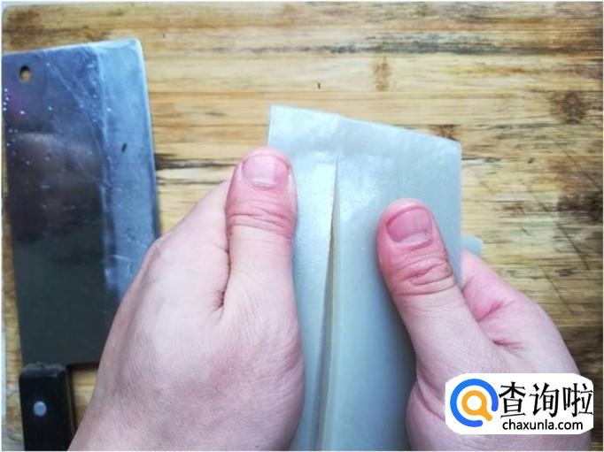 将袋装的苕皮打开,将苕皮取出,取出后我们发现苕皮成块状,如果直接煮的话不容易煮熟,所以一定要将苕皮一块一块的掰开,掰开后再将其进行一层一层的分离。