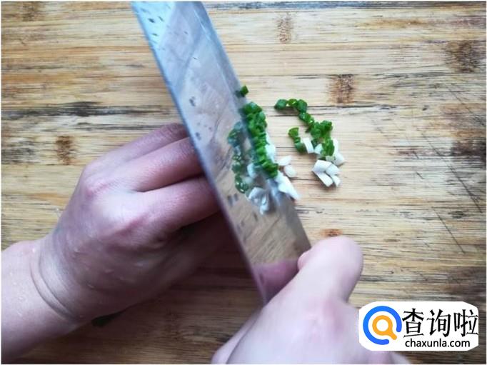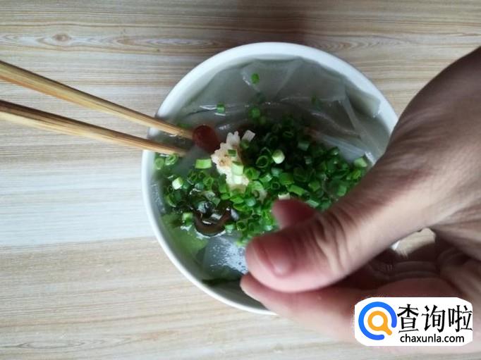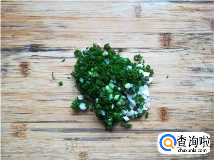 时间还比较充裕,我们在煮海带丝的过程中还可以准备一些小葱,将小葱切碎,待用。