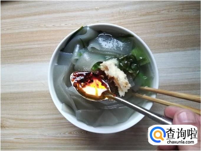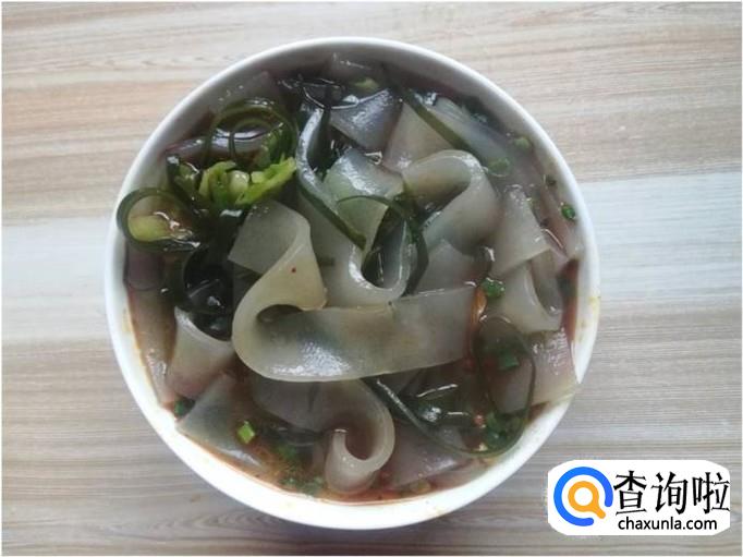 海带、袋装苕皮、莲白、辣椒油、花椒粉、盐、味精、十三香、醋、酱油、葱花