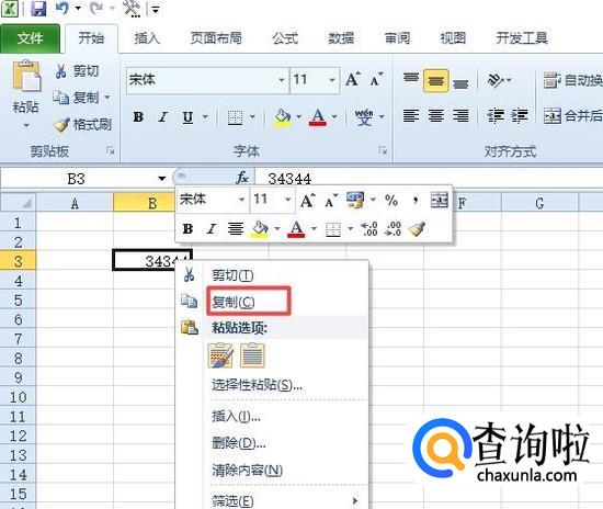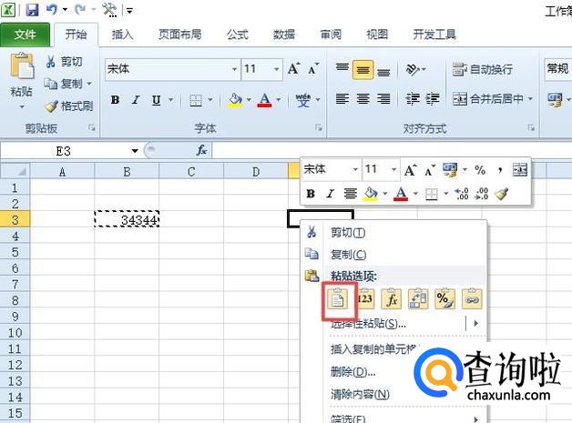然后我们任意右击一个其他的单元格,弹出的界面,我们点击粘贴;