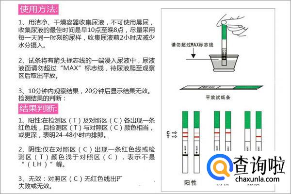 排卵试纸的具体使用方法是:打开铝箔袋,取出检测试剂。持试条将有箭头标志线一端插入样本收集容器中,浸没至少3秒钟(注:深度不可超过标志线横线),然后取出平放或粘贴在测试卡(可用记录纸代替),开始计时观察测试结果。等待红线出现,应在10-20分钟内时观察反应结果,20分钟后结果判定无效。