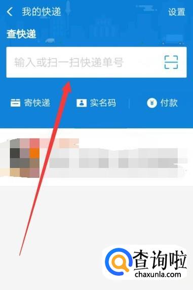进入之后,在图示位置输入快递单号即可查询,如图所示。