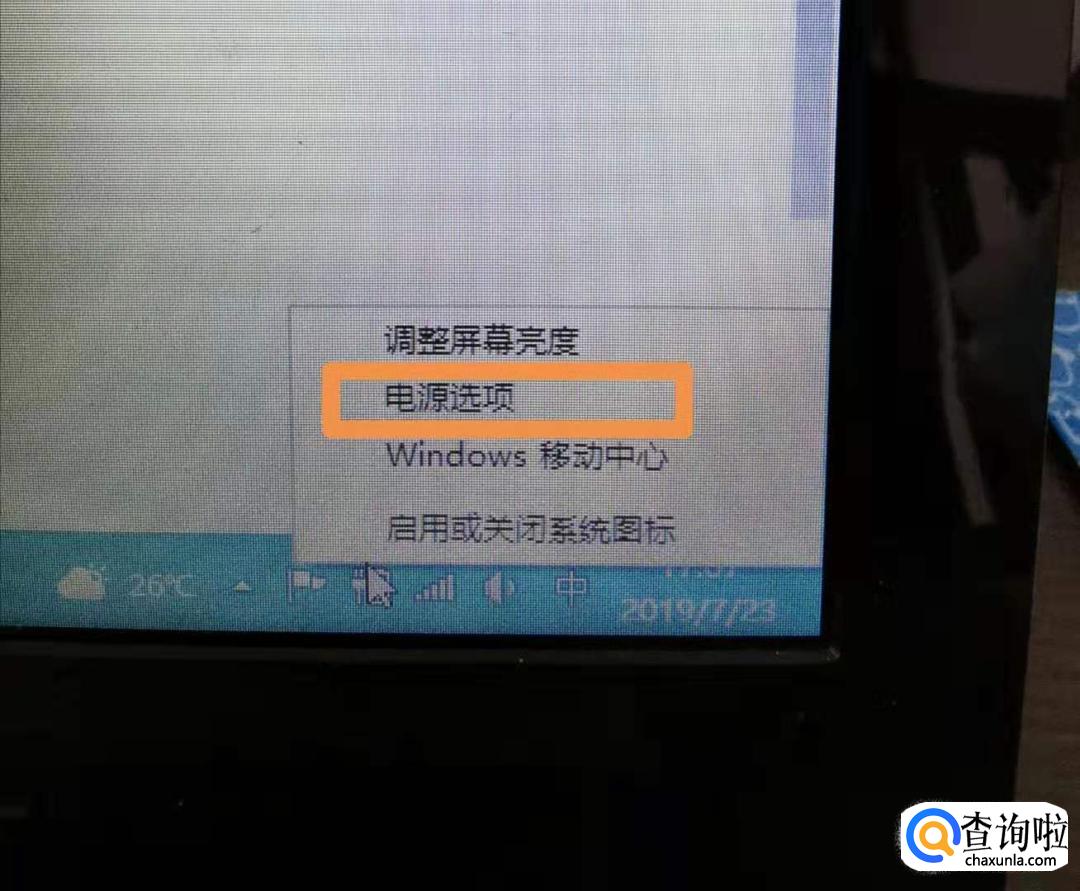 首先鼠标右击电脑底端菜单栏中的电源图标,选择【电源选项】。