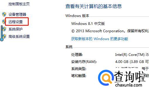 然后进入如下界面,点击页面左端菜单栏中的【远程设置】。