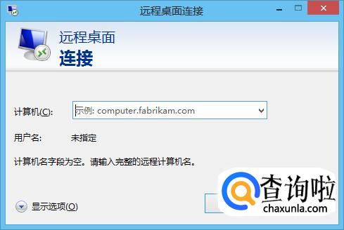 以上操作后就进入“远程桌面连接”对话框,在计算机选项后的输入框内输入刚才开启了远程桌面功能电脑IP地址,点击连接。然后输入被访问电脑的登录用户名和密码,点击【确定】即可。