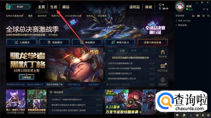 第一步,打开英雄联盟客户端,然后点进生涯界面: