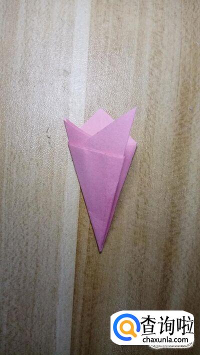 对照底边的中心,右角向左折叠,然后左侧的角再向右侧折叠,折叠出如图所示的形状。