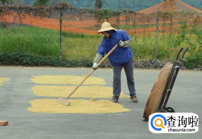 然后把谷子搬到平坦宽阔的地方铺开晾晒,晒得干一些之后谷粒更容易脱落,打的时候也省力气。