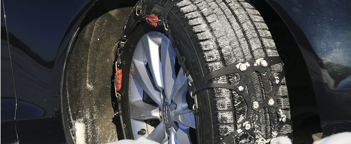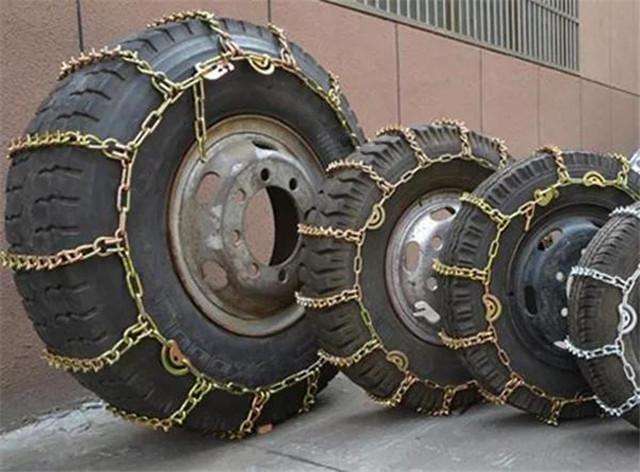 防滑链一般是由钢链或橡胶链制成,具有防滑的功能。按照结构可以把防滑链分为两种:一种是已经接成罩状的防滑链;另一种是交叉安装的几根单独的防滑链,它比较简单便宜,但安装不如前者方便。
