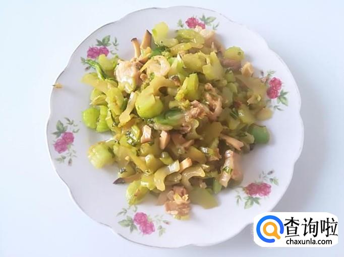 然后出锅装盘,这样清香浓郁的肉炒香菇芹菜就做好了。