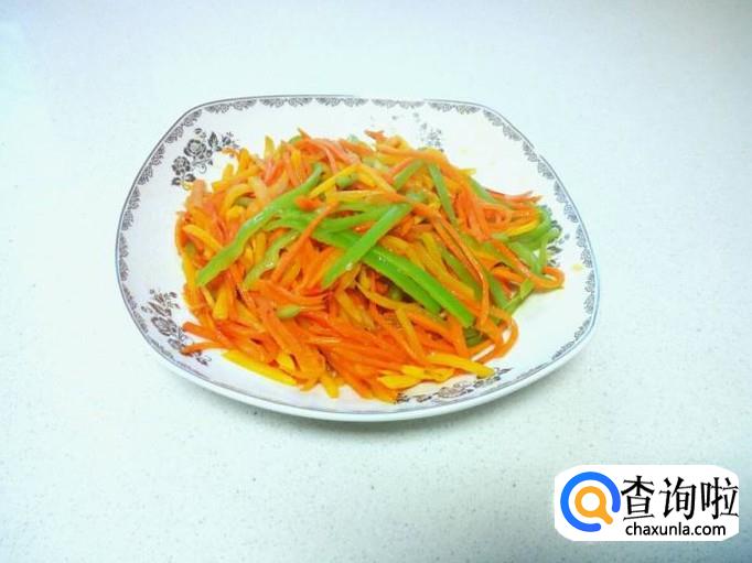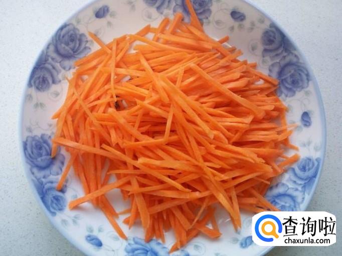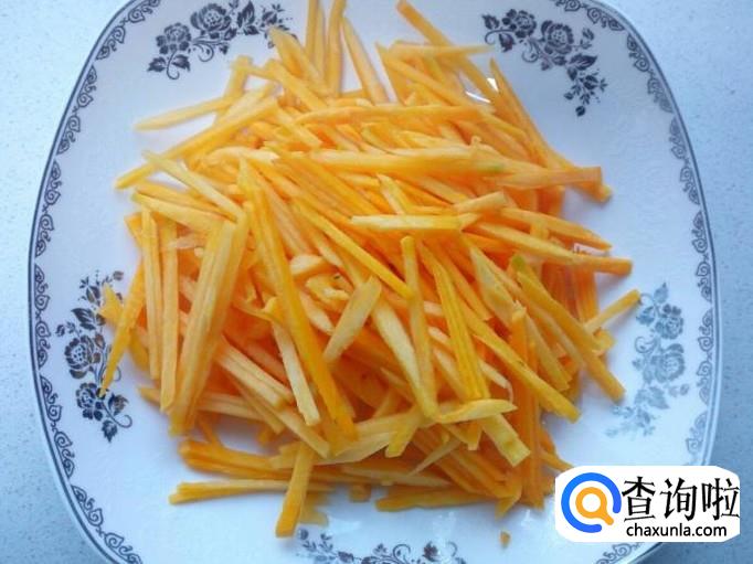 胡萝卜去皮,用水清洗干净,控干水分,切成丝。