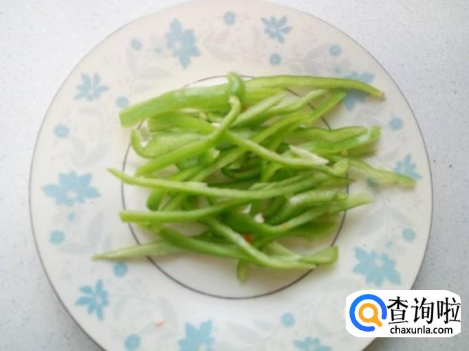 青尖椒用水清洗干净,控干水分,切成丝。