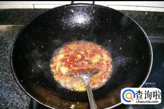 在锅里面倒一些油,然后把油盐蒜,花椒倒进去,煸香。