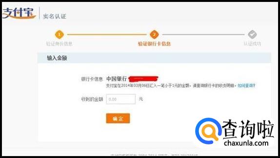 点击"继续认证"后,进入支付宝银行卡打款信息页面,请您将银行卡中查询到的支付宝打款金额准确输入以下图示中的信息项,并按以下页面提示操作。