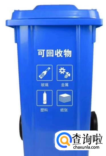 蓝色垃圾桶:代表可回收再利用垃圾,包括塑料、纸类、金属等有利用价值的物质,这些物质将被纳入废品回收系统,作资源再生处置使用。
