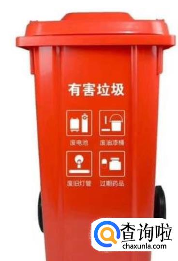 红色垃圾桶:代表有害物质,有时也用橙色标示,有害物质包括废电池、荧光灯管、油漆、过期药品、化妆品等不可回收且带有一定污染危害的物质。