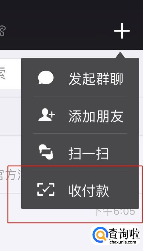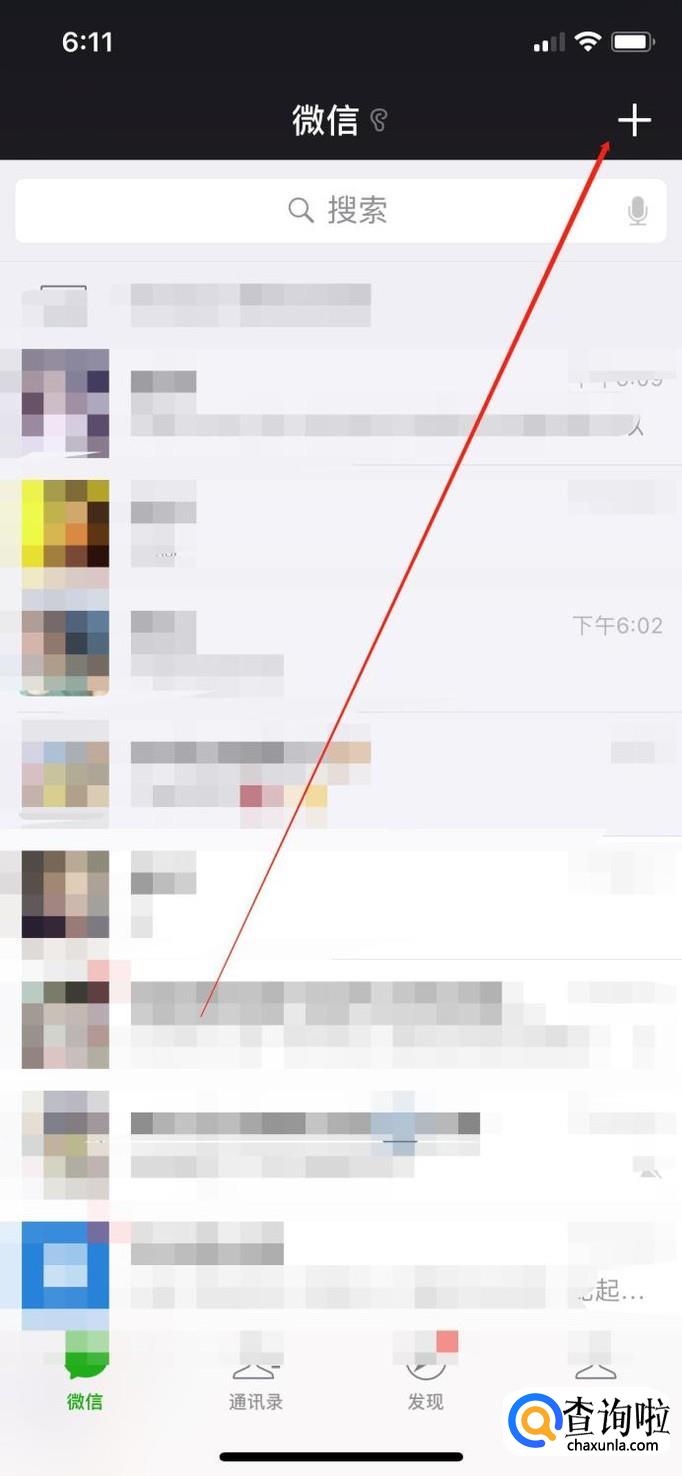 点击微信页面右上角的+号