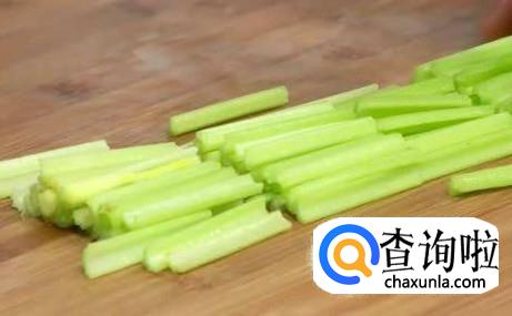 接着将芹菜段放入,反复的翻炒,炒到芹菜熟就可以出锅了,一道芹菜炒口菇就做好了。