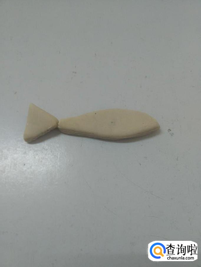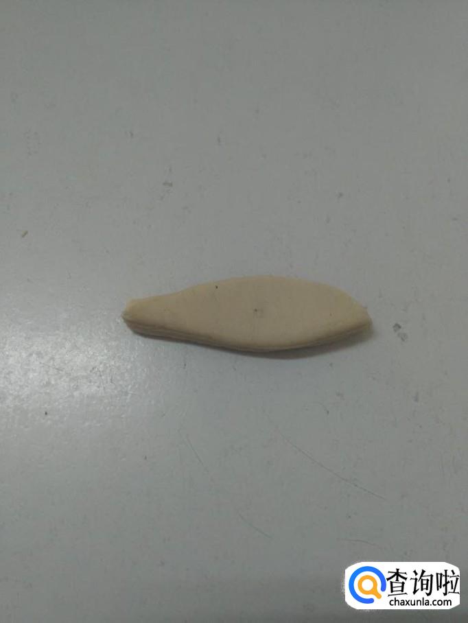 先用一块白色彩泥捏成树叶的形状,表示海鸥的身体。