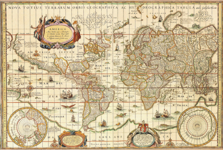 1569年,佛兰德(今比利时北部)地理学家墨卡托绘制了第一张使用“墨卡托投影法”的航海世界地图,三维球面能通过数学方法转换成二维平面,并且能保证恒向线在地图上显示为直线。