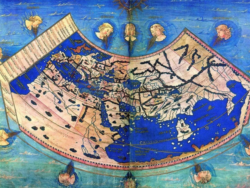 罗马帝国时期,地中海内部以及和跨海域的海上贸易愈发繁荣。地中海东部货物集散地的亚历山大港人因此获取了丰富的欧亚大陆地理知识,为早期的地图制作提供了必要信息。