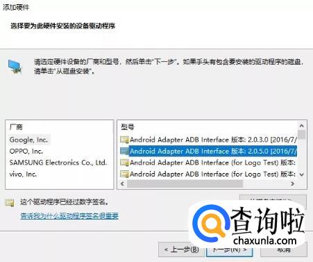 这里我们选择版本号较高的驱动来安装。最后我们接入手机,就能在设备管理器看到一个“ Android Composite ADB interface”驱动了,证明手机已经连接了电脑,并且可以打开取证软件来识别手机型号。