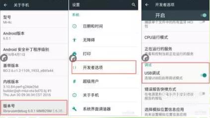这里简单介绍一种打开USB调试的方法:设置->关于手机->版本号*N>设置>开发者选项>USB调试。(N通常为7以上)