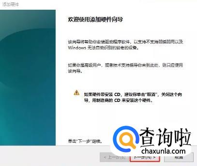 首先选择“操作”—“添加过时硬件”点击进入下一步