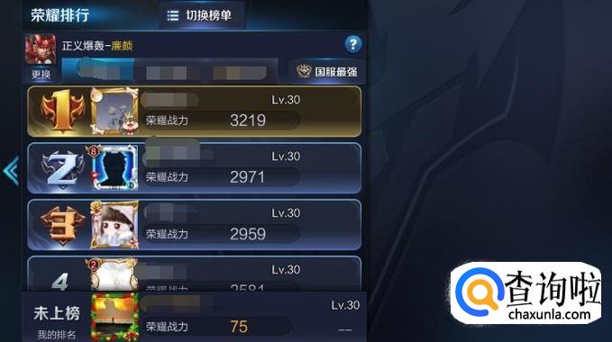 接着选中【荣耀排行】,在荣耀排行这里玩家就能看到自己的排名了。