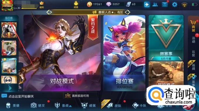 首先登录王者荣耀游戏后点击页面左侧的【排行榜】。