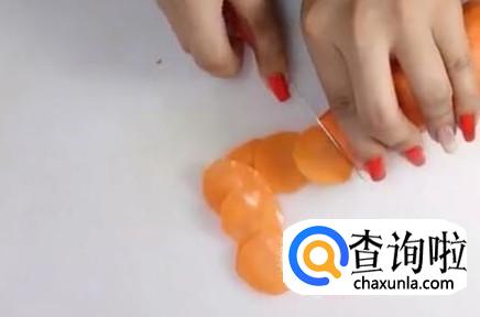 首先用刀把胡萝卜切成薄片。