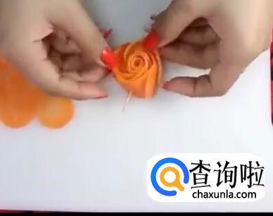 最后用牙签把做好的胡萝卜玫瑰,固定起来就可以了。