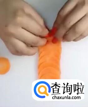 接着把胡萝卜片卷成一团,如下图所示