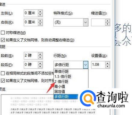 接着在行距的位置上取消掉固定行距,否则是会出现文字看不到的情况,选择1.5倍或者其他倍距的设置。